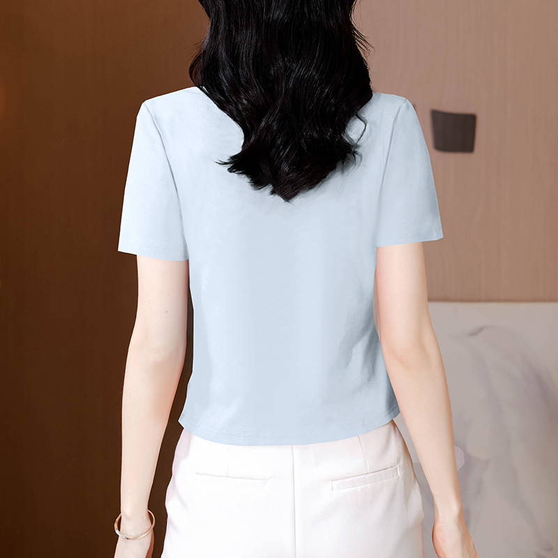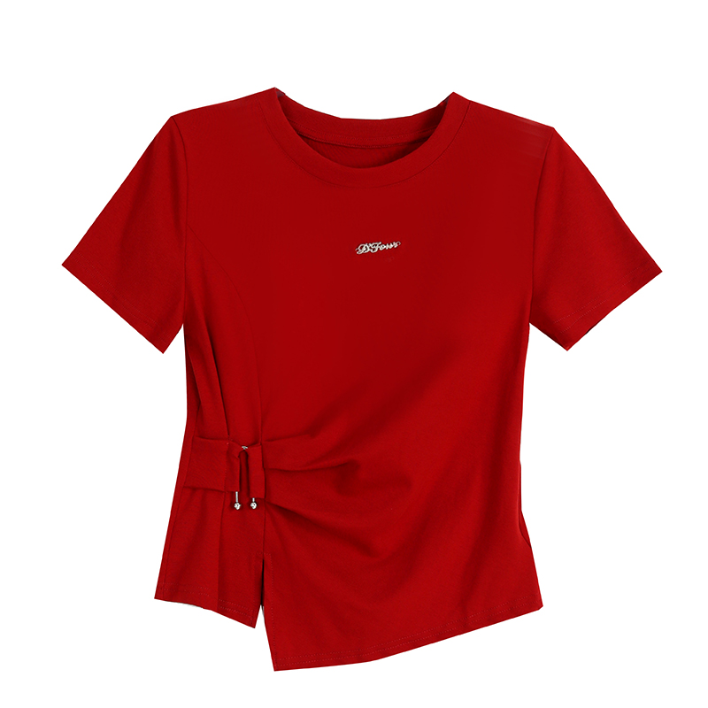 BY17394# 胖MM夏季新款小众设计感侧边装饰腰带时尚显瘦短袖T