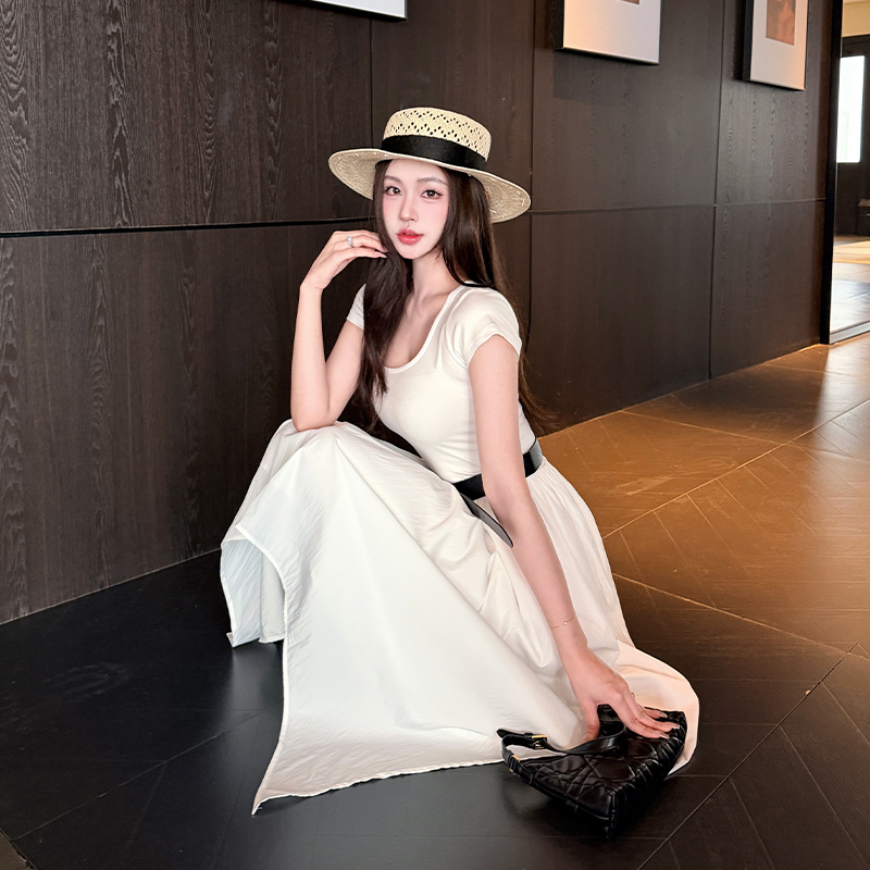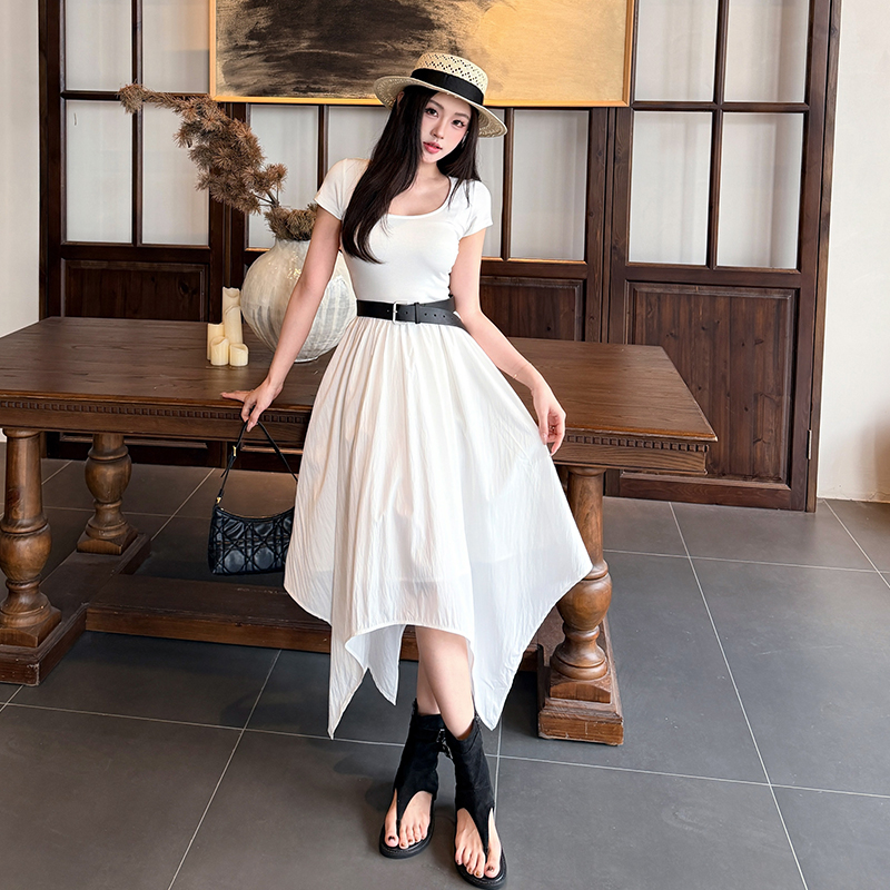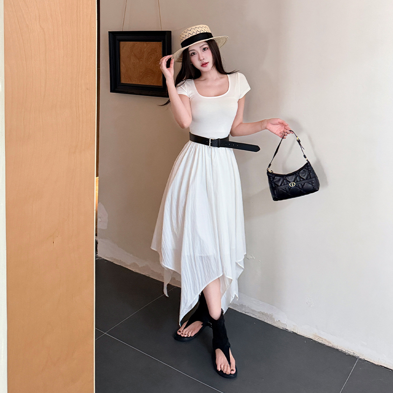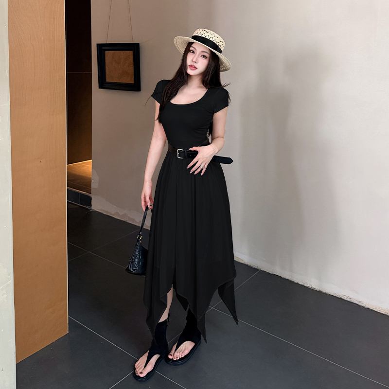 BY17420# 时尚性感连衣裙高级气质仙女裙子夏收腰显瘦不规则大摆裙