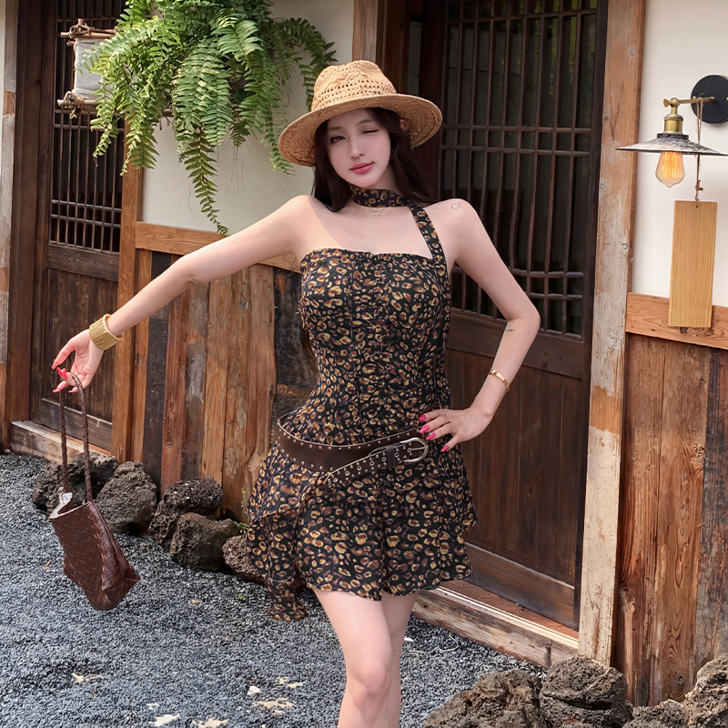 首页 > 短袖连衣裙、夜店装 > BY17423# 美式辣妹豹纹抹胸连衣裙夏性感设计感小个子修身收腰短裙
