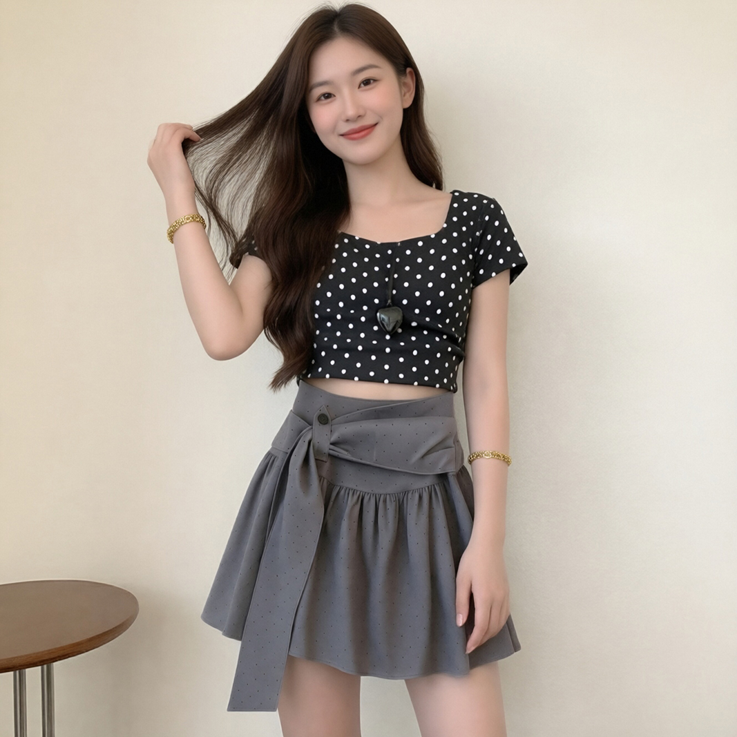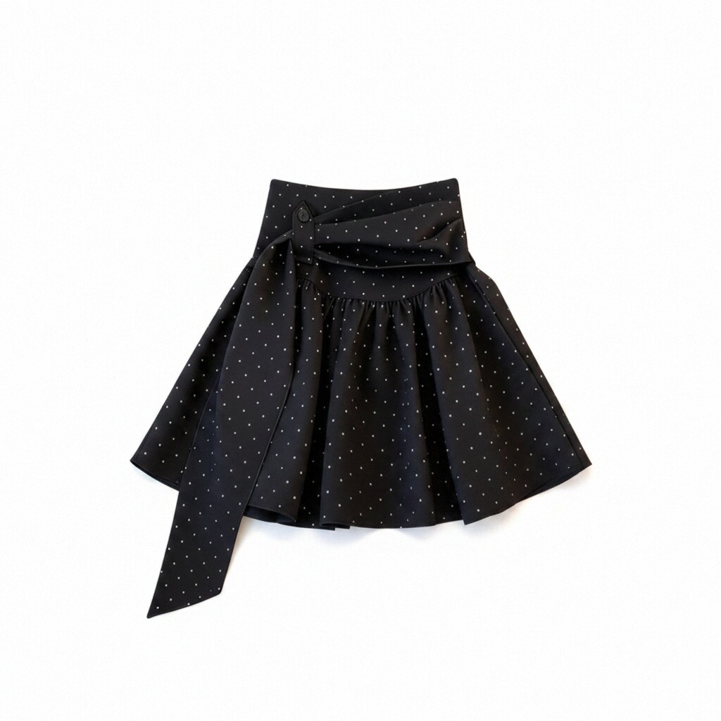 BY18494# 夏季新款甜美风高腰显瘦遮胯中裙大码设计感腰带波点A字半身裙女 服裝批發女裝批發服飾貨源
