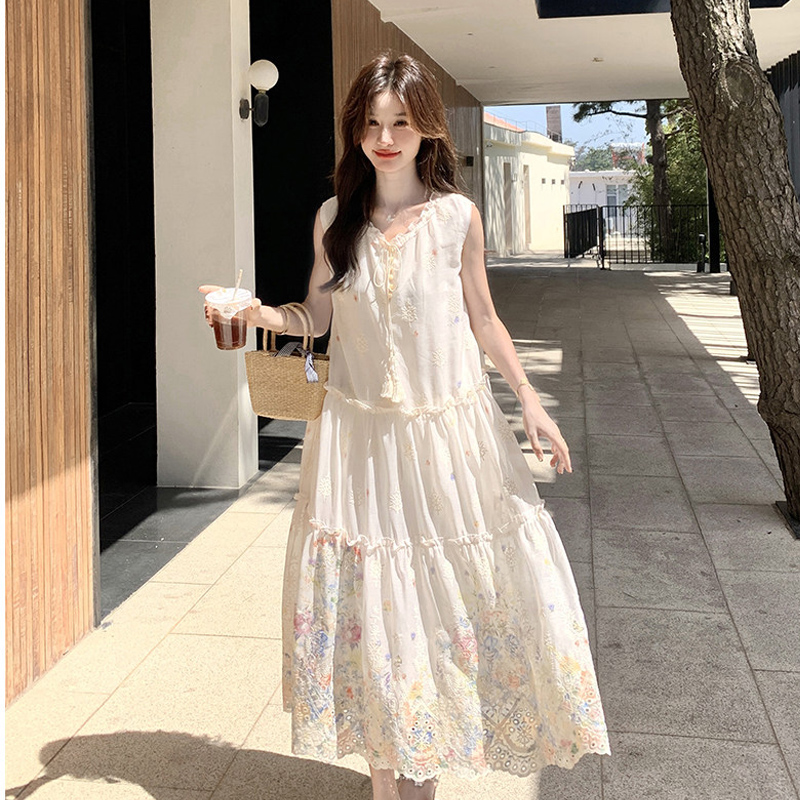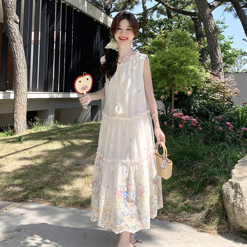 BY18575# 甜美可人系带领碎花无袖连衣裙女夏季超好看气质显瘦背心长裙 服裝批發女裝批發服飾貨源