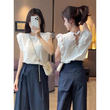 BY18822# 白色镂空露背蕾丝长袖t恤女新款爆款夏季宽松设计感休闲上衣 服裝批發女裝批發服飾貨源