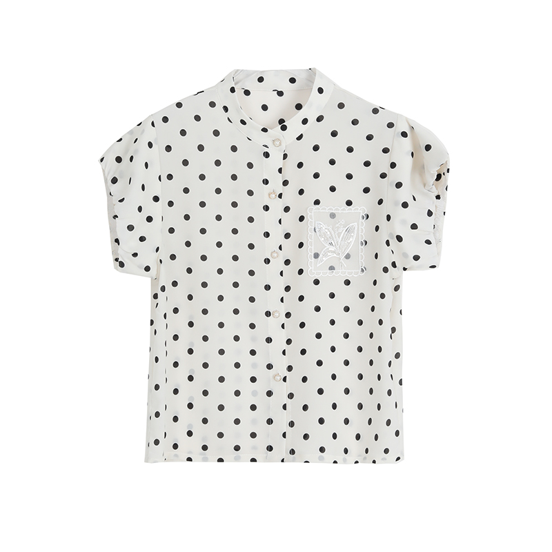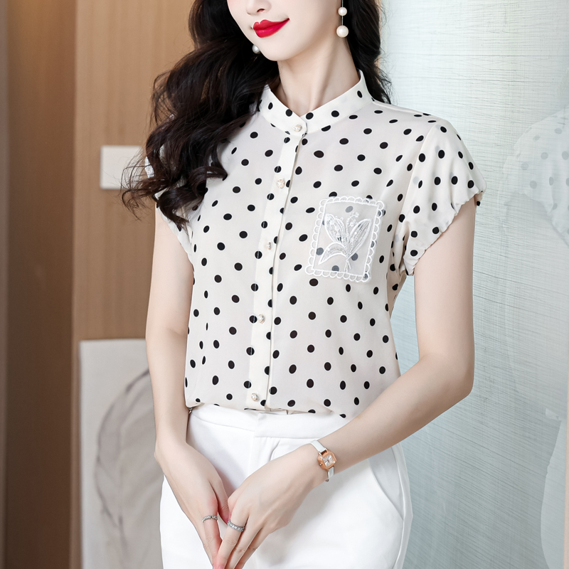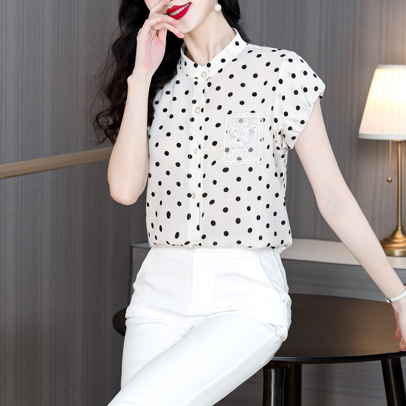 BY18845# 时尚女装波点雪纺衫女夏季新款衬衫上衣款减龄七分袖小衫 服裝批發女裝批發服飾貨源