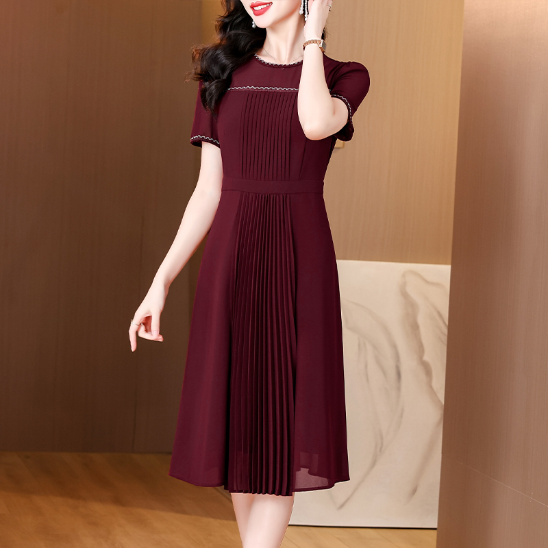 BY18869# 法式轻奢雪纺连衣裙女夏季新款设计感气质收腰显瘦百褶裙 服裝批發女裝批發服飾貨源