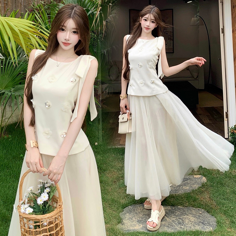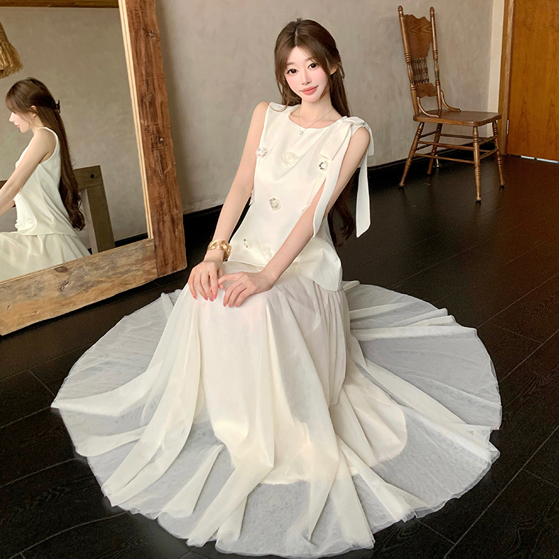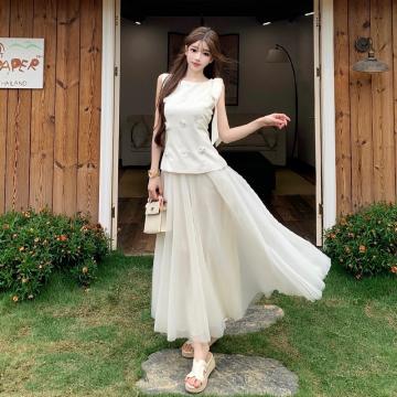 BY18909# 温柔风假两件连衣裙女夏季收腰显瘦气质长款大摆仙女裙 服裝批發女裝批發服飾貨源