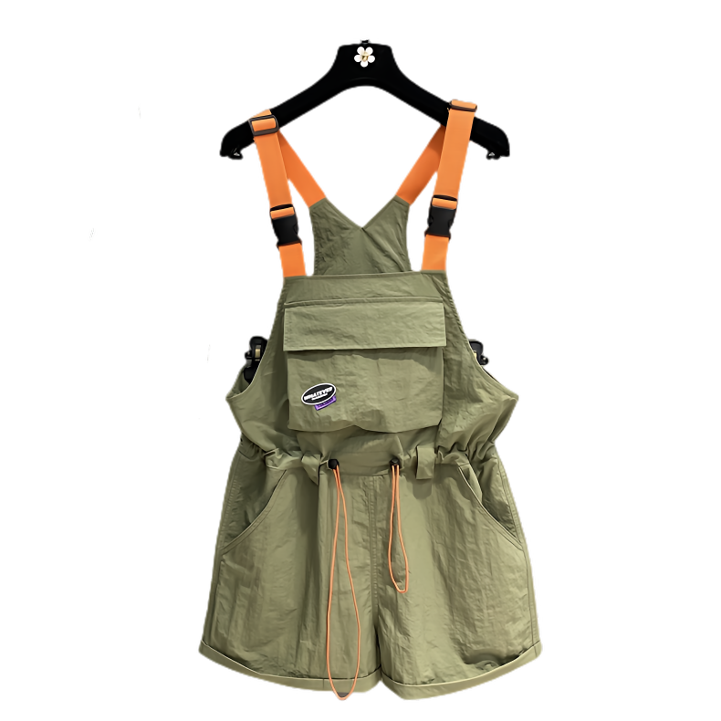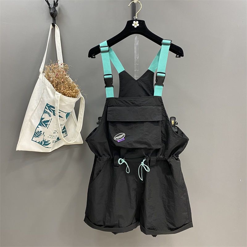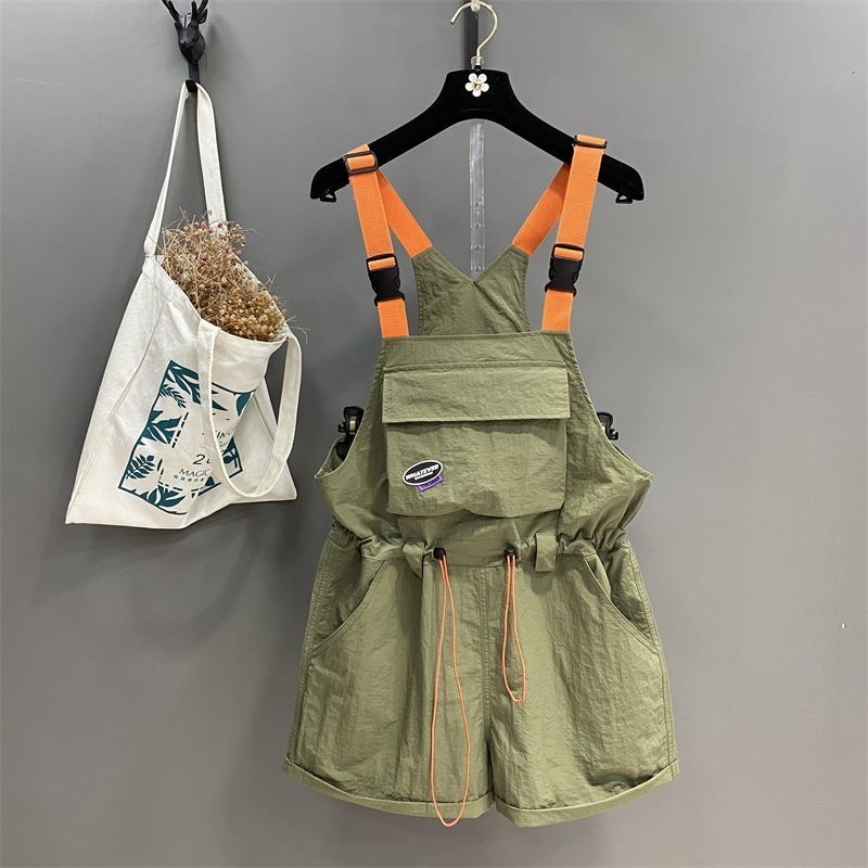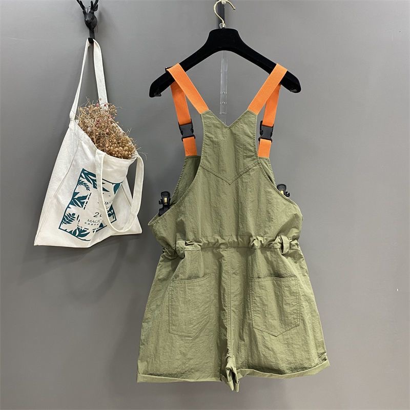 BY18925# 夏季欧货工装背带裤时尚抽绳收腰显瘦阔腿卷边连体短裤女潮 服裝批發女裝批發服飾貨源