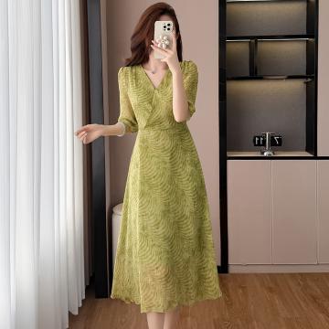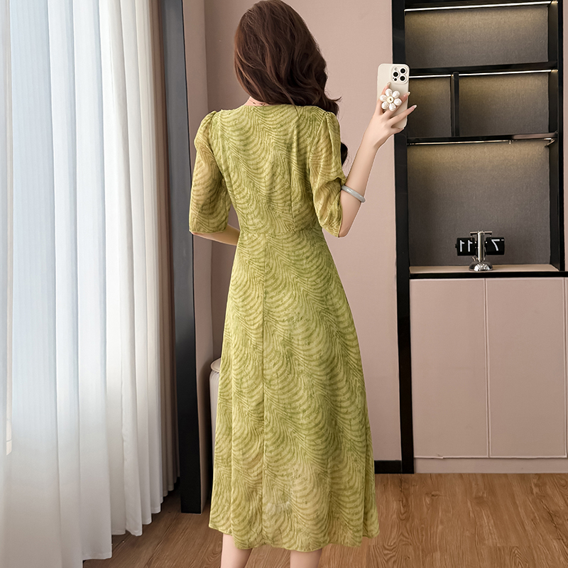 BY19111# 时尚洋气夏季轻薄透气雪纺连衣裙修身显瘦中长款阔太太女装装 服裝批發女裝批發服飾貨源